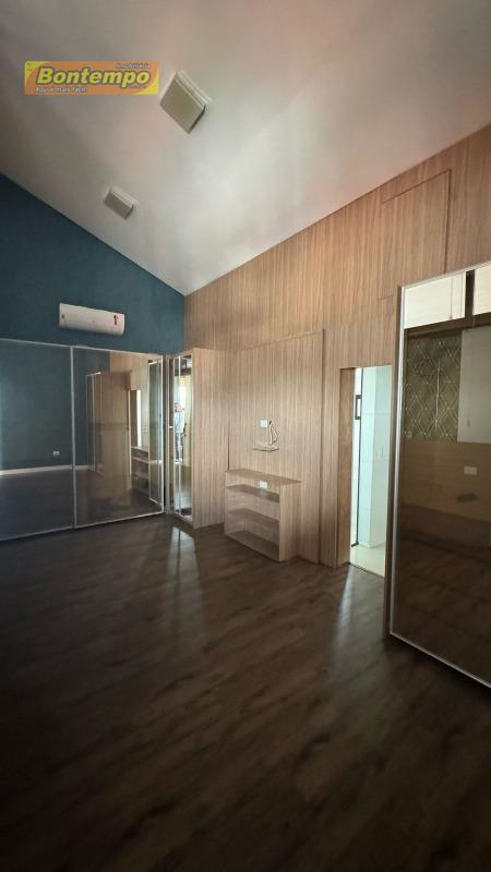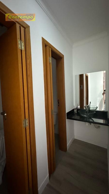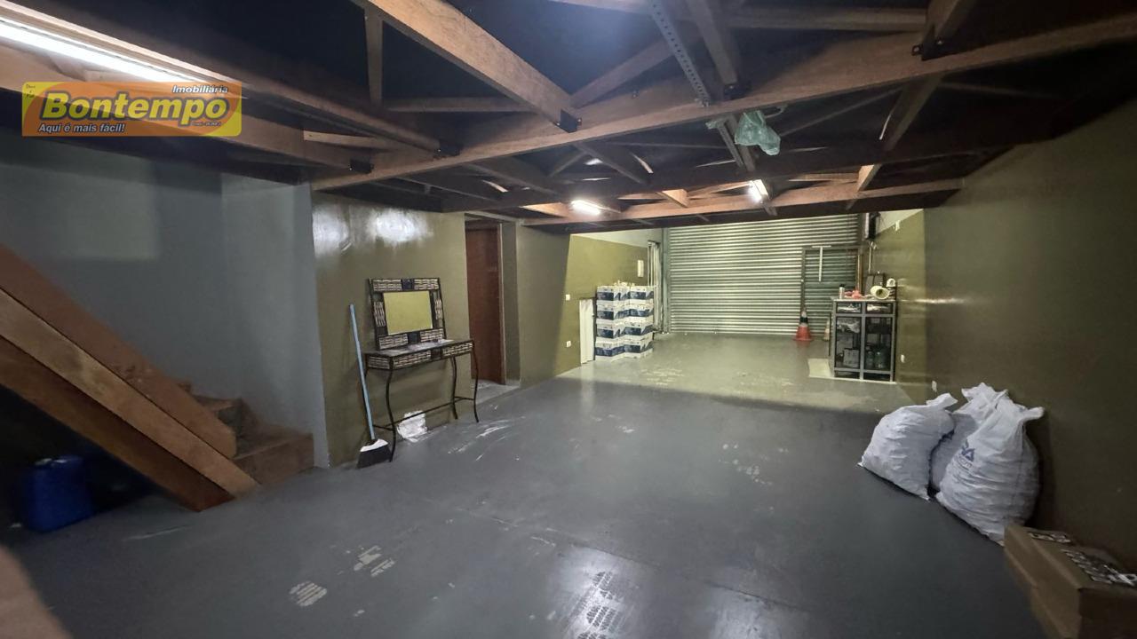 Térreo com garagem fechada, portão eletrônico, mezanino e banheiro.