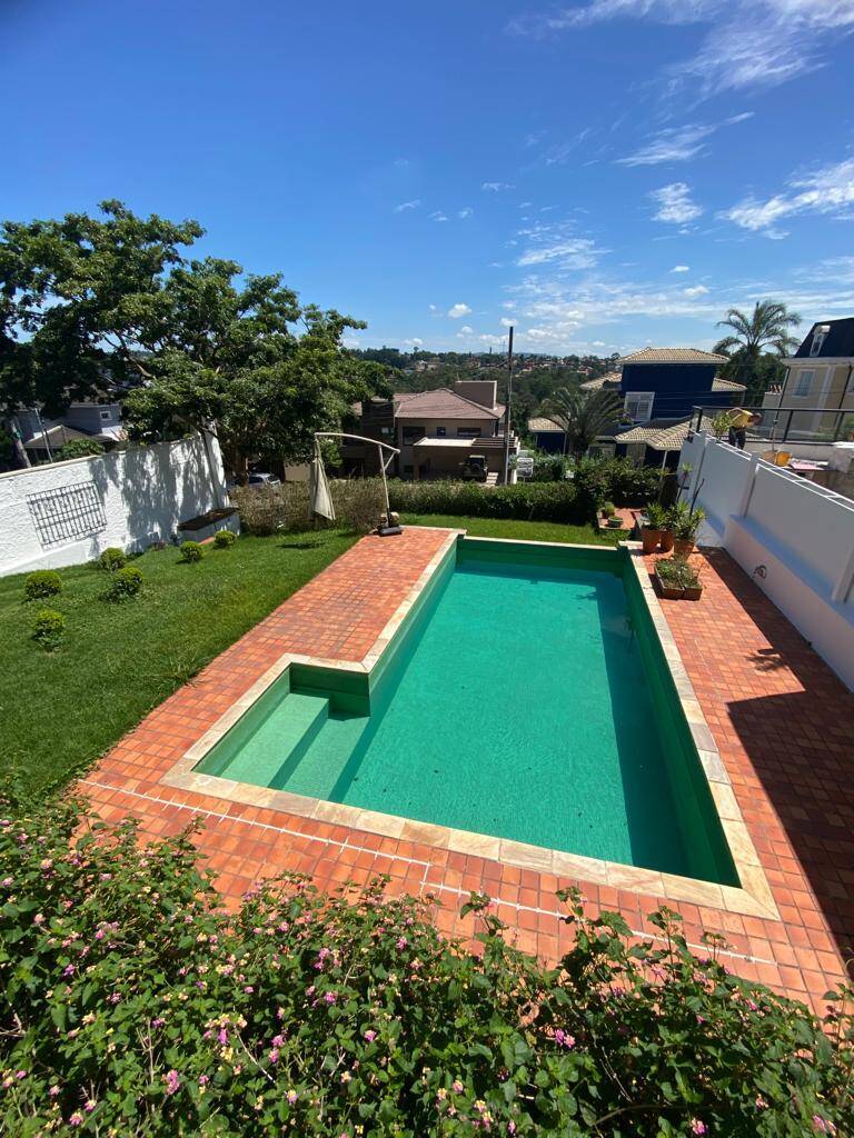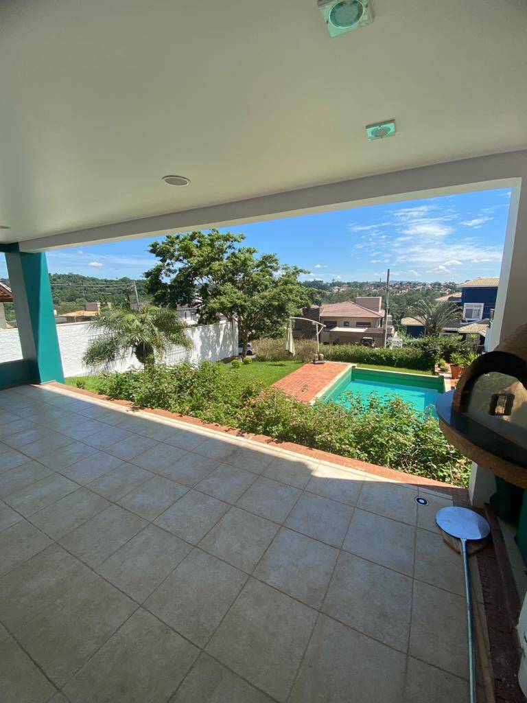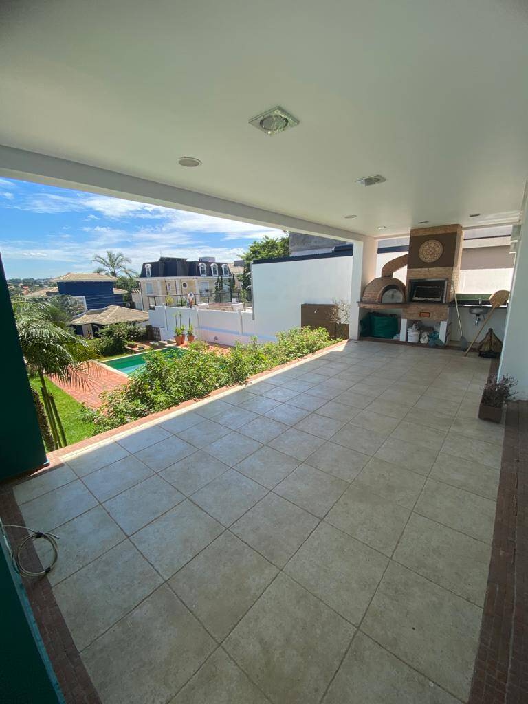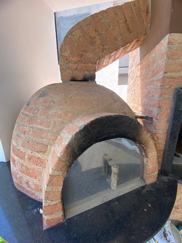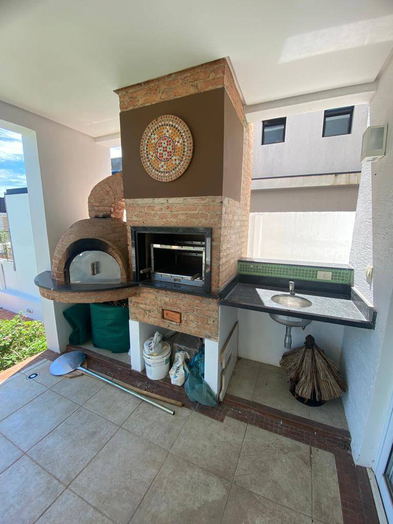 Varanda com churrasqueira e forno de pizza + amplo quintal com piscina de borda infinita.